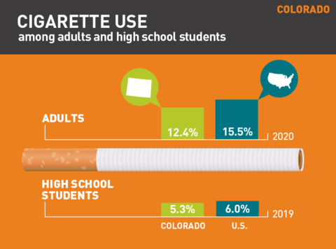 - In 2019, 5.3% of high school students in Colorado smoked cigarettes on at least one day in the past 30 days. Nationally, the rate was 6.0%.2