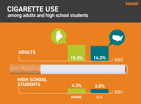 - In 2021, 4.3% of high school students in Maine smoked cigarettes on at least one day in the past 30 days. Nationally, the rate was 3.8%.2