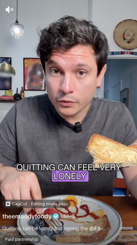 Lifestyle creator Mao Tao, known for her aesthetic day-in-the-life content, recently celebrated 1-year nicotine-free as part of an ongoing series documenting her quitting journey. Fabrizio, a creator who goes by the name “Moody Foody” who connects with his followers through mouthwatering, Mexican American inspired recipes, also shared honest conversations about his own path to sobriety.